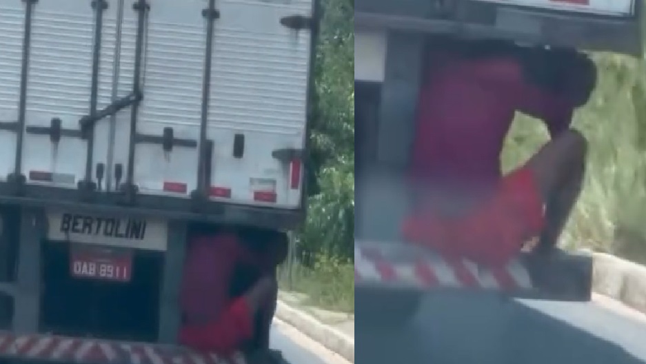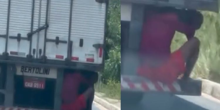 MANAUS – Um homem corajoso e irresponsável foi flagrado escondido na traseira de um caminhão em Manaus, escondido, pegando uma “carona da morte”.
