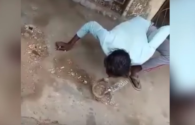 Uma pessoa que assistia a cena acabou registrando o ataque da cobra . No vídeo, é possível ver o homem se abaixando e beijando a boca do animal, que, se sentindo ameaçada e reagindo à ação de Sonu, abocanhou a boca do caçador.