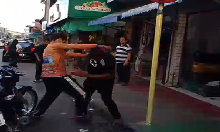 Nas imagens, os dois homens se envolvem em empurrões e troca de socos enquanto discutem a dívida. “Quem tá me devendo é tu ou eu?”, questiona um deles no auge da confusão. O motociclista rebate: “Eu tô trabalhando, seu otário! Tá pensando que eu tô vagabundando?”.
