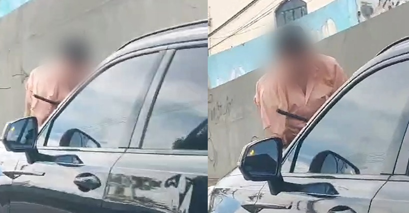 O homem teria subido no carro após um acidente de trânsito, mas acabou sendo levado pelo motorista dessa forma perigosa e arriscada. O imagem foi registrada na avenida Djalma Batista.