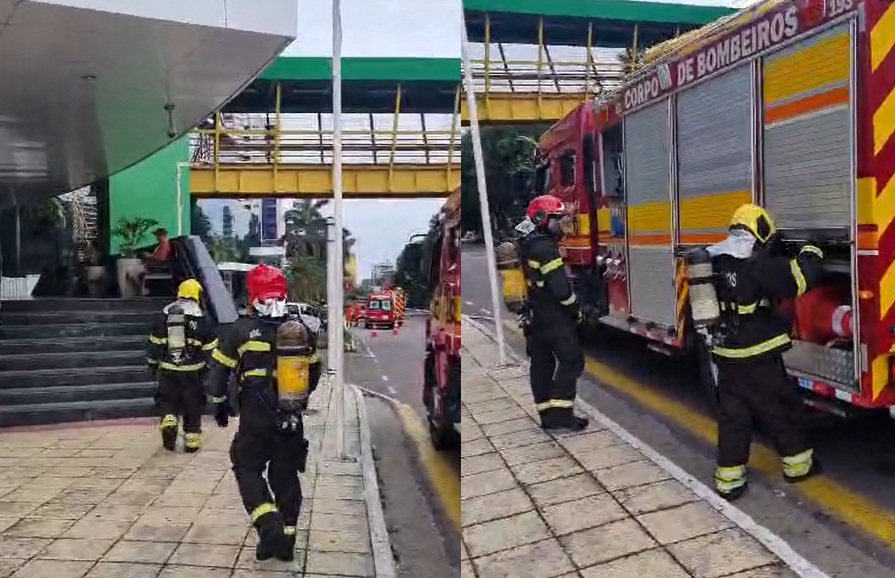 Nesse momento o shopping ainda não estava aberto para clientes. Um vídeo mostra os bombeiros chegando antes de controlarem as chamas.