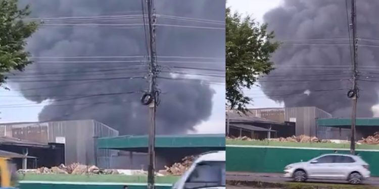 MANAUS – O galpão de uma fábrica de materiais recicláveis pegou fogo na manhã desta terça-feira (16), na Avenida Autaz Mirim, no bairro Distrito Industrial, Zona Leste de Manaus. Os bombeiros combatem o incêndio neste momento.
