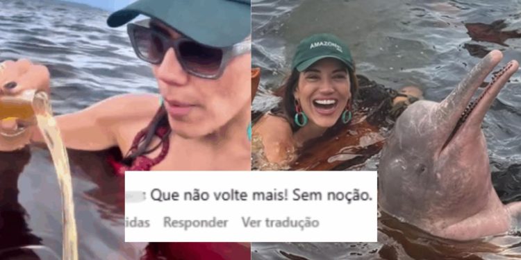 ENTRETENIMENTO – Nesta semana, uma influenciadora que veio visitar Manaus foi alvo de críticas após divulgar um vídeo jogando cerveja no rio para atrair botos.