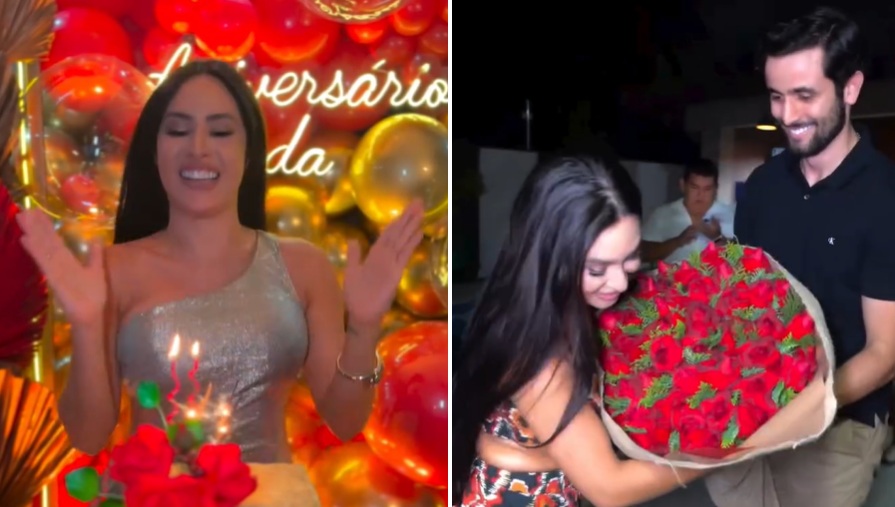 AMAZONAS – Isabelle Nogueira ganhou festa de aniversário surpresa para comemorar seu aniversário de 32 anos, completados neste sábado (21), com direito a flores de Matteus e muita emoção.