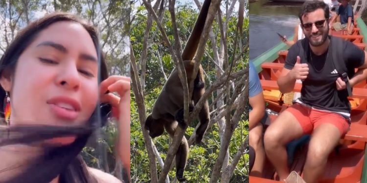 AMAZONAS – Isabelle resolveu mostrar a Matteus neste fim de semana as belezas naturais da Amazônia. E não estamos falando dela, mas da floresta, macacos, lagos e riqueza natural de Acajatuba, que fica em Iranduba.