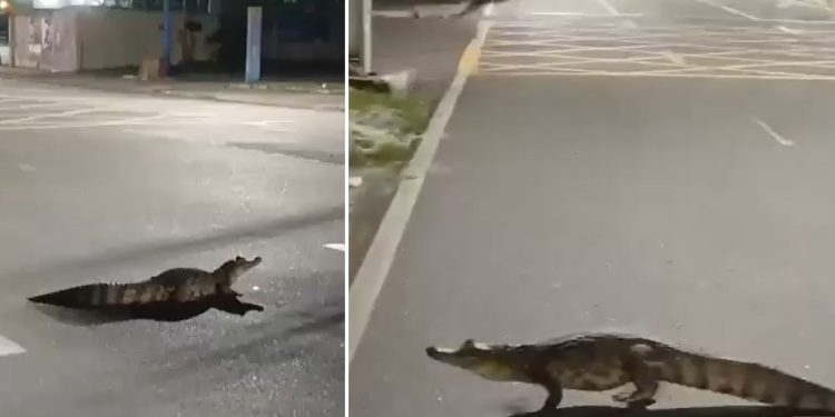MANAUS – Um jacaré foi filmado na Avenida Djalma Batista, no bairro Chapada, na zona centro-sul de Manaus, dando um passeio na madrugada desta sexta-feira (27).