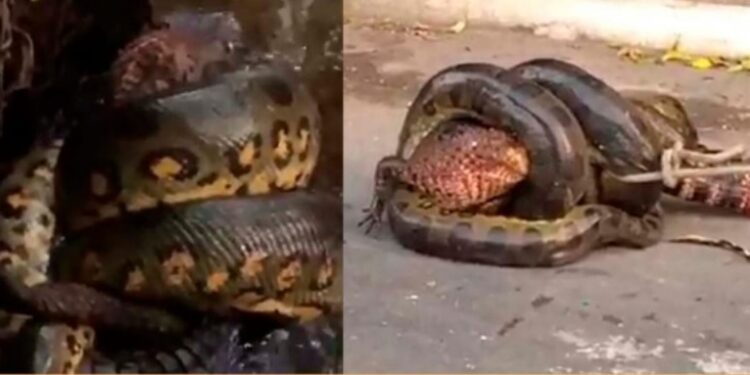 MANAUS- AM |Uma luta um tanto inusitada viralizou nas redes sociais. trata-se do embate entre um jacaré e uma cobra sucurí. Os dois animais se engalfinharam e a cena chocou pela forma como ocorreu.