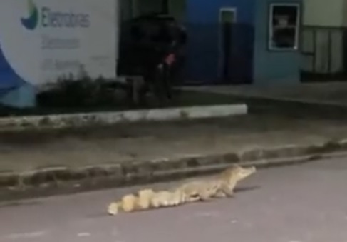 Com o período de chuvas a cena torna-se relativamente comum nessas áreas, onde a poluição das águas não favorece que o animal fica em seu habitat natural.