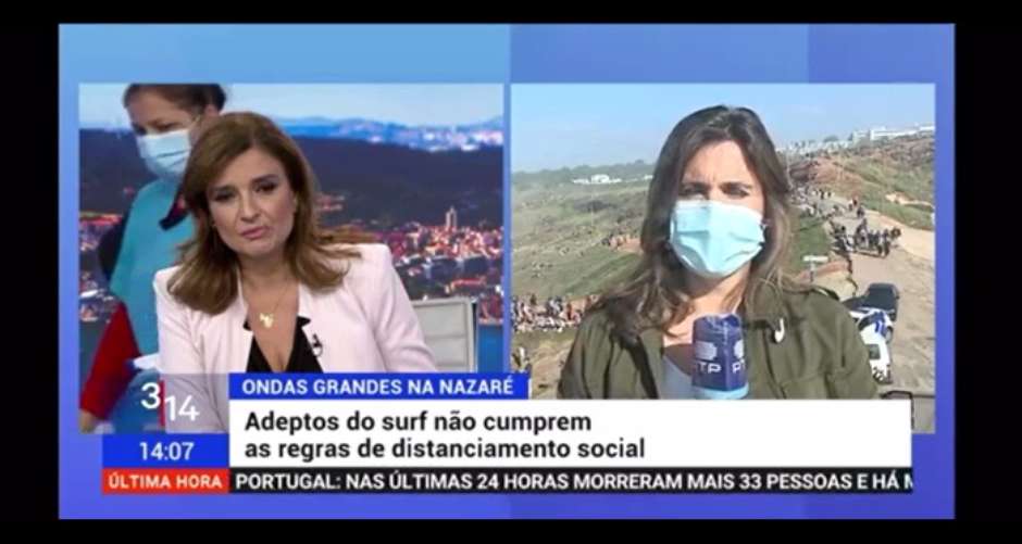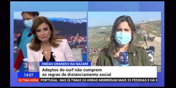 PORTUGAL | A apresentadora do telejornal ‘3 às 14’, do canal português RTP3, conversava ao vivo com uma repórter sobre regras de distanciamento social na pandemia de covid-19 quando ocorreu um imprevisto diante das câmeras.