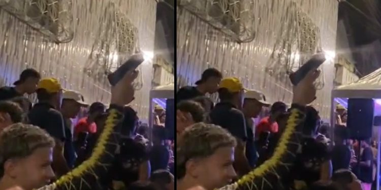Rondo e sem preocupação com o amanhã, eles curtem o som com muita bebida e ostentação geral na frente das câmeras dos celulares. Não há a identificação do jovem até agora e nem se a arma estava carregada.