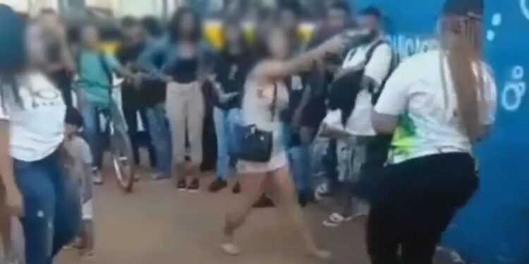 DISTRITO FEDERAL | Uma jovem apontou uma arma para a cabeça de uma aluna durante uma briga em frente ao Centro Educacional São Francisco, o CED Chicão, em São Sebastião (DF), na terça-feira (22). Vídeos da confusão divulgados nas redes sociais mostram a jovem abrindo a bolsa, sacando a arma e apontando para a cabeça da estudante. As informações são do G1.