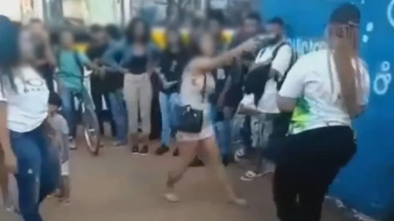 Na sequência, a mulher voltou a guardar o revólver na bolsa. De acordo com o diretor da escola, a agressora que puxou a arma não é aluna da escola. A estudante ameaçada frequenta o 1º ano e discutia com outra aluna da mesma série, quando a jovem com a arma se envolveu na briga.