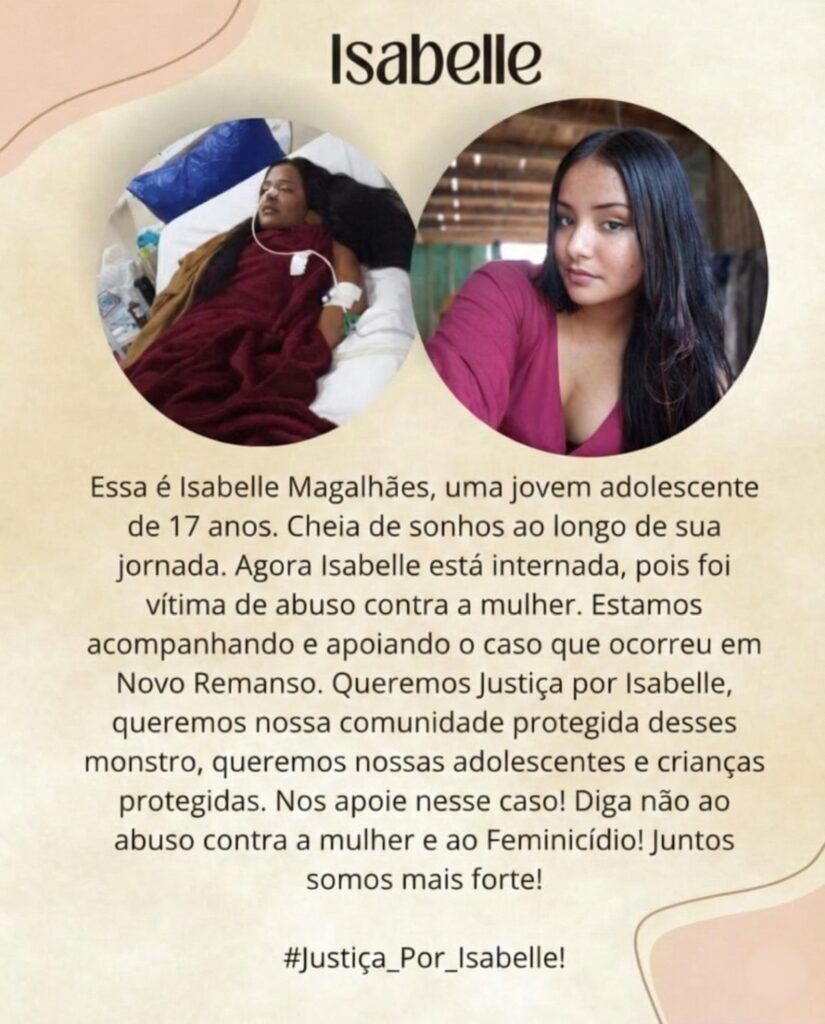 MANAUS – Uma manifestação pedindo justiça por Isabelle Magalhães, de 17 anos, tomou conta das ruas de Itacoatiara, onde ela entrou em coma após sofrer abuso sexual. A jovem desapareceu, no dia 30 de dezembro, e foi achada no 1º de janeiro de 2026, em coma.