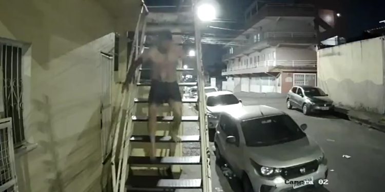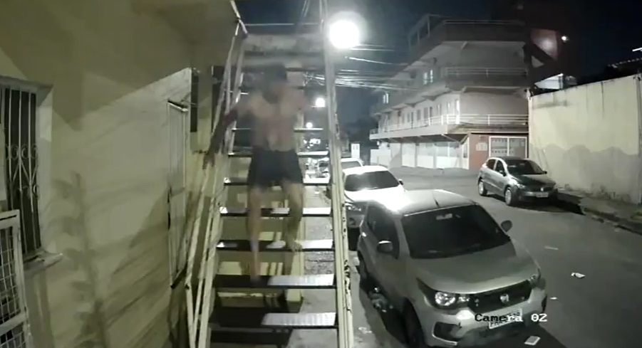 Luiz Eduardo, de apenas 22 anos, é o que desce as escadas sangrando. na terça-feira (6).