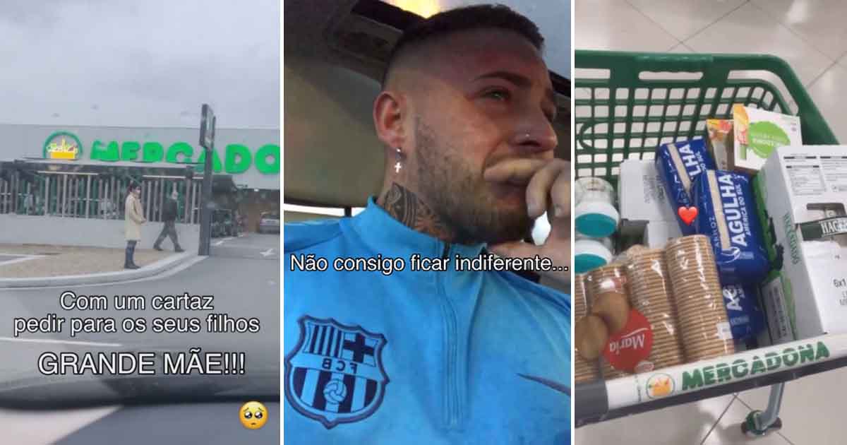 “Esta senhora é uma grande mãe… 2 horas ao pé do Mercadona Fânzeres… milhares de carros a entrar ninguém com capacidade para ajudar! O cartaz a pedir bens higiénicos e COMIDA para os seus filhos… é desumano… não consigo ficar indiferente e ajudei esta grande MÃE!”, escreveu o jovem na legenda do vídeo que soma milhares de visualizações e comentários parabenizando o seu ato de bondade.