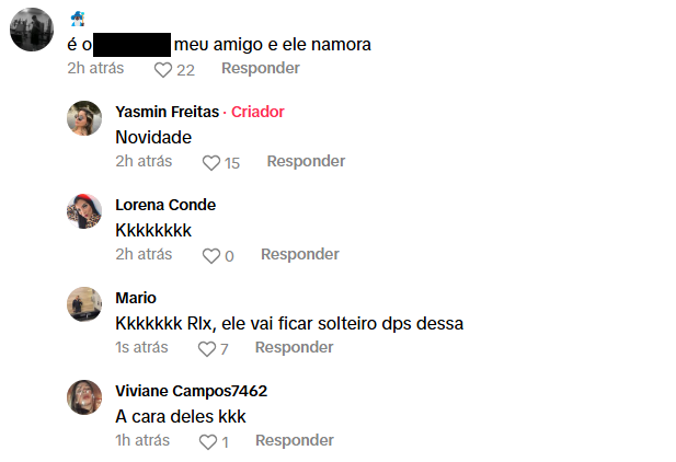 Segundo Yasmin, após ele beijar sua cabeça e abraçar, o rapaz foi embora e nem deu para bater um papo. “O cara literalmente sumiu, perdi o amor da minha vida KKKKKKKKKKK”, se divertiu.