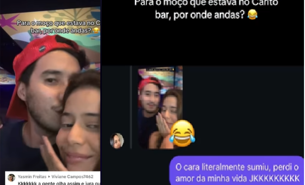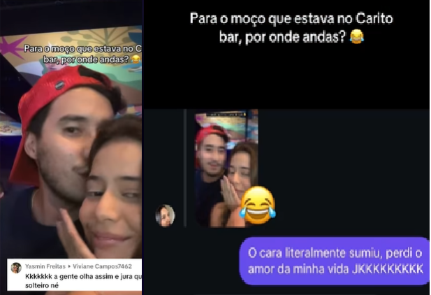 Yasmin teve uma interação rápida com o rapaz, que acabou aparecendo durante o vídeo do brinde dela com os amigos, mas foi o suficiente para ela ficar interessada. O problema é que, ao postar as imagens nas redes sociais e pedir ajuda para encontrá-lo, logo um amigo o dedurou: “Meu amigo e ele namora”.