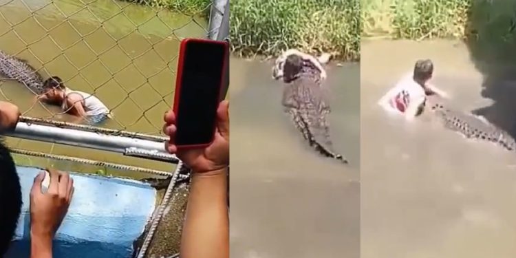 MUNDO – Um jovem das Filipinas virou comida de crocodilo no zoológico após pular a grade para fazer uma selfie com o animal no cativeiro.