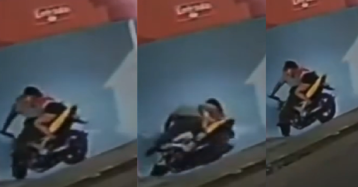 Nas imagens, o casal está prestes a entrar no estabelecimento a caminho de uma suíte, mas não imaginava que a entrada era uma ladeira. O homem, que pilotava a motocicleta, não aguenta e cai para o lado, fazendo a companheira cair com tudo. Ambos supostamente já estavam alcoolizados.