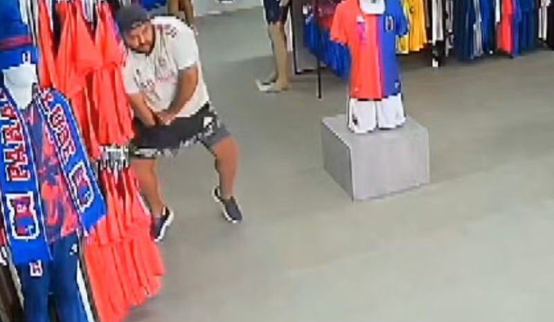 CURITIBA (PR) – Com uma habilidade extrema, um homem foi flagrado furtando 17 camisetas de uma loja em Curitiba, no Paraná, na última terça-feira (11). Câmeras de segurança filmaram toda a ação do ladrão, que escondia as peças dentro da própria bermuda.