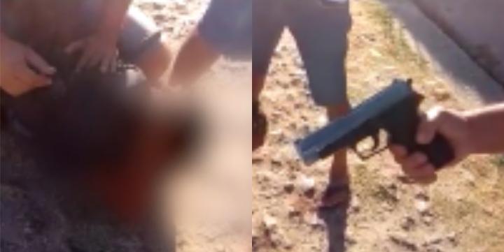 Segundo informações, o assaltante estava aterrorizando a população, no momento em que foi capturado por moradores. Com ele, foram encontrado duas bolsas que ele havia furtado e uma arma de fogo.