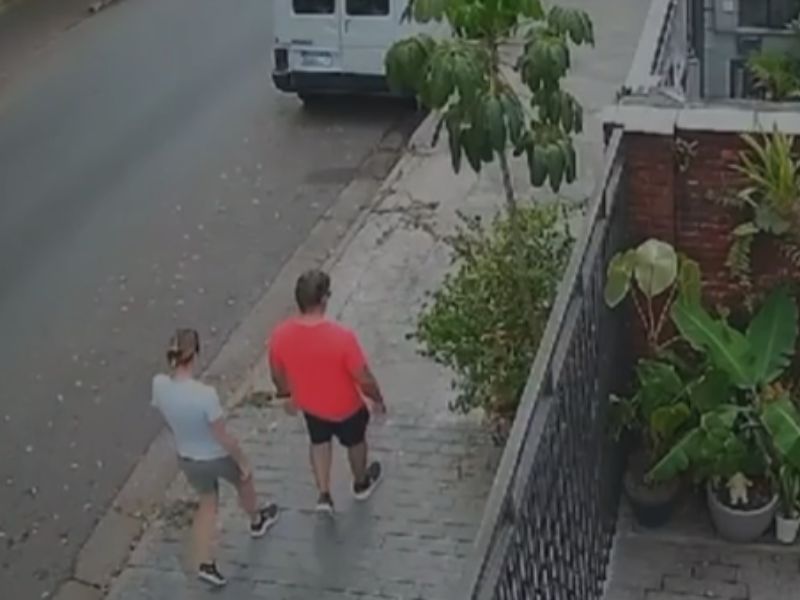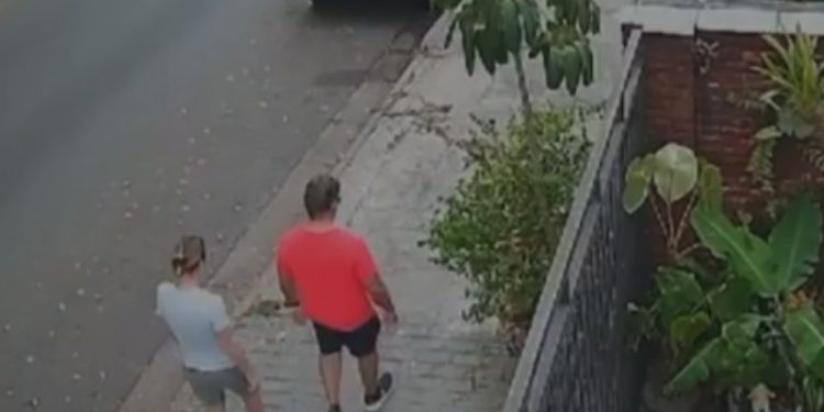 Uma câmera de segurança mostra o casal sendo abordado por dois criminosos em motos. Eles anunciam o assalto e logo atrás vinha uma mulher com um carrinho de bebê que ao perceber a ação atravessa correndo rapidamente.