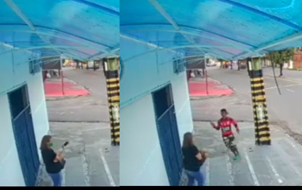 O assalto foi registrado pela câmera de segurança de um estabelecimento e durou pouco mais de 5 segundos.