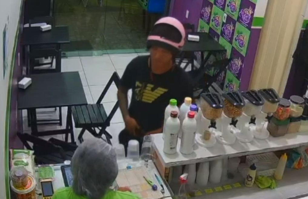 A loja fica na Avenida Sumaúma, bairro Monte das Oliveiras, zona Norte de Manaus. Com o capacete sobre a cabeça, o criminoso invade o local por volta das 21h, age rapidamente e foge.