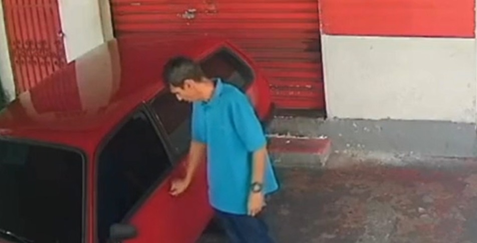 O veículo pertente a um idoso que denunciou o homem. Vizinhos revoltados o pegaram antes da polícia e sentaram a porrada nele.