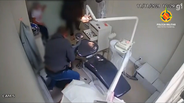 Enquanto isso, o policial, que é subtenente, estava na cadeira do dentista sendo atendido. No início, conforme mostra o vídeo, ele não percebeu o que estava acontecendo e demorou para notar a movimentação.