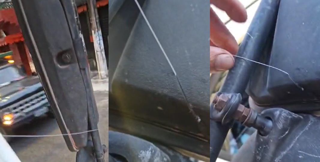 MANAUS – Uma cena inquietante grava por um caminhoneiro em Manaus causou medo neste fim de semana. Uma linha de cerol cortou o retrovisor do caminhão dele, perto da Manaus Moderna, no Centro, onde muita gente solta papagaio passando cerol na linha, o que é proibido por lei.