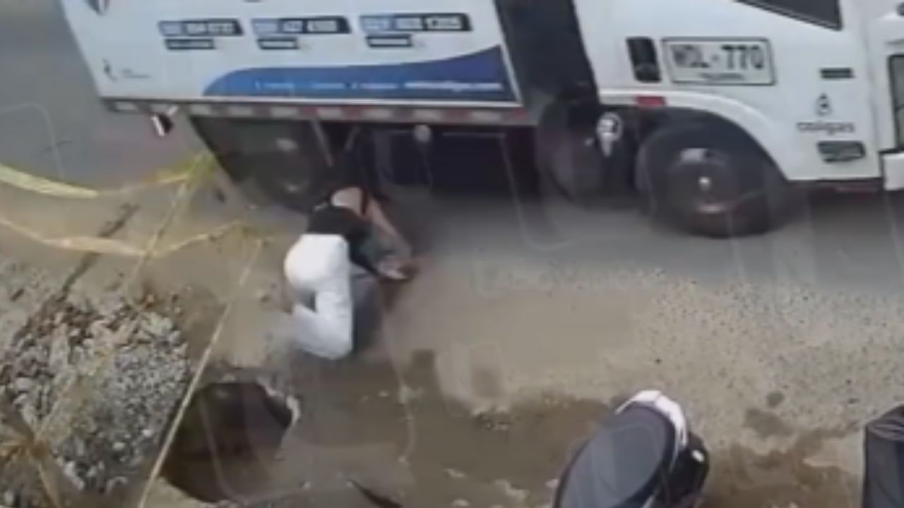 MUNDO – Imagens de câmeras de segurança registraram um momento de grande perigo em Quindío, na Colômbia. Uma mãe que caminhava pela calçada com o filho tropeçou e caiu na pista exatamente no instante em que um caminhão de entrega de gás passava pelo local.