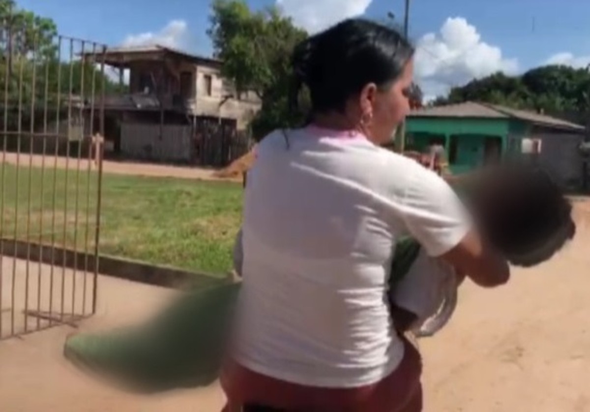 As imagens mostram a mãe saindo do hospital. As pessoas a ajudam no transporte e a moto segue para a casa dela. A direção do hospital informou que Melgaço não tem funerária. Quando alguém morre, funcionários de funerárias de outras cidades vão até o município para prestar serviços fúnebres, antes da liberação do corpo às famílias.