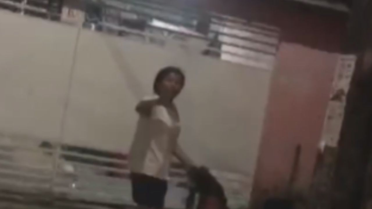 Nas imagens, uma mulher aparece sentada na calçada, com um recém-nascido no colo, enquanto é violentamente agredida por outra mulher que, sem qualquer piedade, puxa seu cabelo com força.