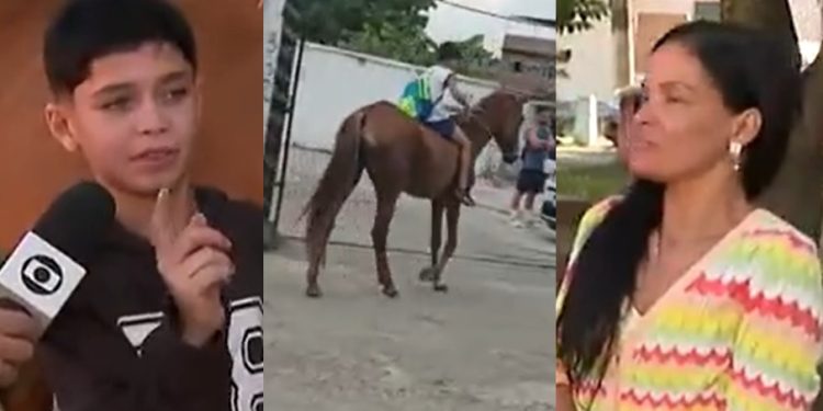 BRASIL – O menino Pedro, que mora em Bangu, no Rio de Janeiro, decidiu que não ia perder aula após o pneu da bicicleta furar, Arrumou um cavalo e saiu pelas ruas em direção à aula. Só que o vídeo viralizou e a mãe dele, Ana Cristina, não fazia a menor ideia da aventura do filho de 11 anos.