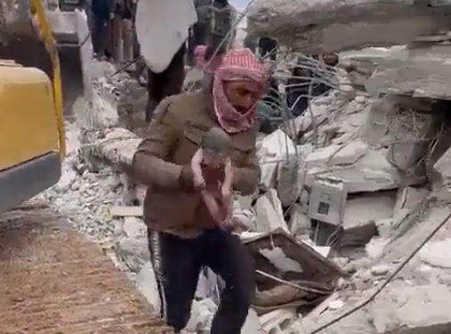 TURQUIA – Uma imagem viralizou nesta terça-feira, ao mostrar um bebê recém-nascido sendo resgatado vivo logo após vir ao mundo na Síria, no meio dos escombros do terremoto que abalou o país e a vizinha Turquia. A mãe dele morreu.