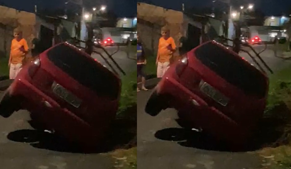 MANAUS – Um carro caiu no buraco na rua Judith da Silveira, antiga rua 24 de Junho, no bairro Colônia Terra Nova, na zona norte de Manaus, onde moradores pedem providências para as ruas esquecidas pela Prefeitura de Manaus.