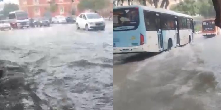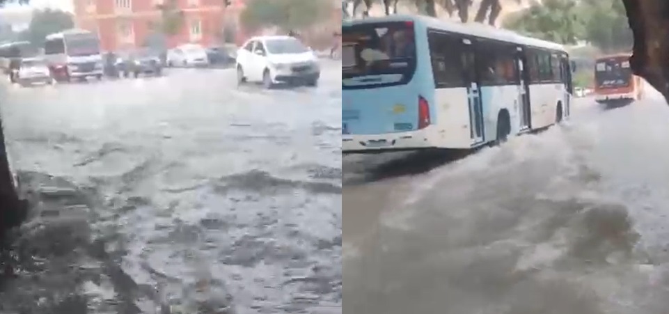 E quem estava a pé ficou com água pode nos calçados. “Lascou-se”, disse um homem em um dos vídeos.
