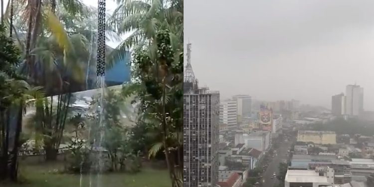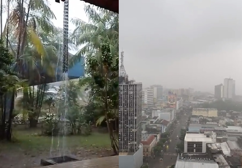 MANAUS – Manaus tem uma segunda-feira (16) chuvosa, motivo de muita comemoração nas redes sociais e nas ruas, já que atingimos a maior seca do Rio Negro hoje.