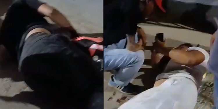 Testemunhas filmaram o casal no chão. Não se sabe a extensão das lesões neles.