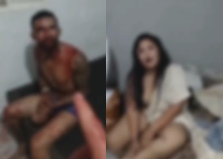 Nas imagens, o suposto amante aparece sentado, usando apenas cueca, atordoado e com o rosto ensanguentado, indicando que teria sido agredido após a descoberta. A mulher é vista sentada na cama, em silêncio, observando a cena.