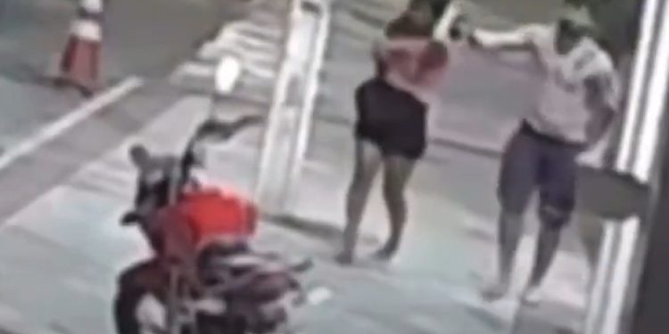 RIO GRANDE DO NORTE – Uma mulher foi agredida, arrastada à força e levada em cima do tanque de gasolina da moto do marido dela em Mossoró, no Rio Grande do Norte. Após as agressões do vídeo, ele arrancou com ela e caiu no meio da rua mais à frente.