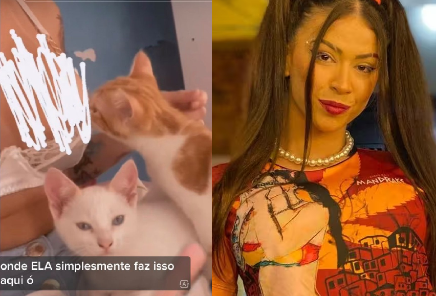 Nas imagens, a funkeira, que é conhecida por fazer shows quase sem roupa e por ter feito sexo oral no palco, fala com voz infantil com os gatinhos bebês.
