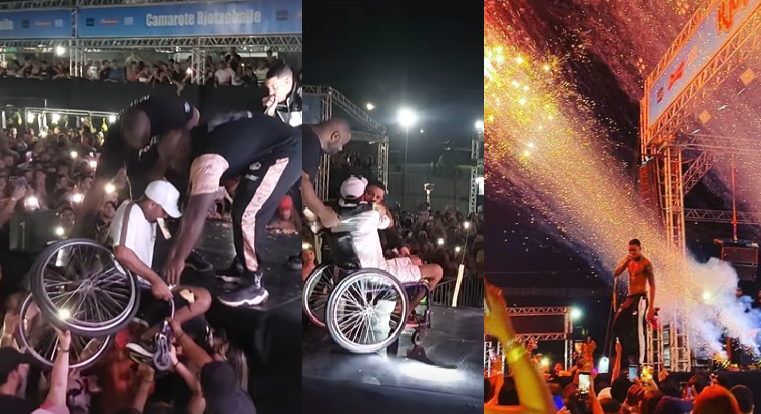 Não só se apresentou, como em determinado momento da noite ele percebeu que na plateia havia um fã cadeirante. Poze parou o show, chamou os seguranças da própria equipe que carregaram o cadeirante e o colocaram em cima do palco para ter uma visão privilegiada do show.