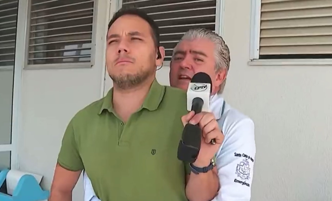 A manobra de Heimlich pode salvar vidas, mas as caras do repórter enquanto era “encoxado” chamaram mais a atenção do que a explicação.