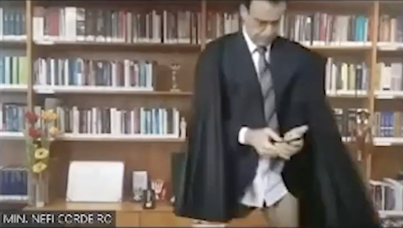 Assista ao momento da sessão em que o ministro aparece sem as calças (25s):