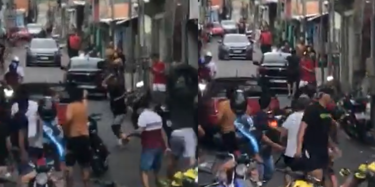 A confusão generalizada onde eles foram flagrados dando “grau” e fazendo muito barulho com as motos aconteceu na conhecida avenida Tefé. De repente, uma correria é registrada e alguns criminosos já chegam com pedaços de pau para cima dos indivíduos.