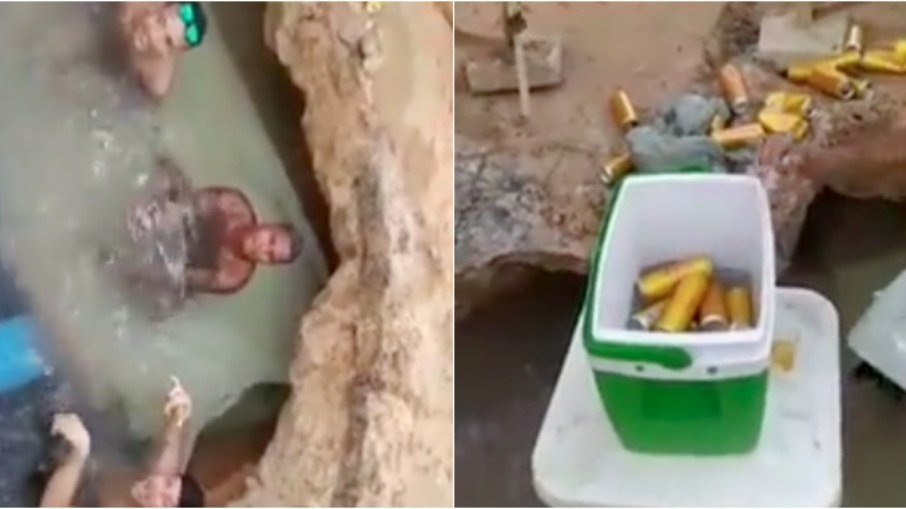 No vídeo, é possível ver os homens dentro da água até mesmo carregando uma caixa térmica com cervejas. Na gravação, eles dizem que as casas da região estão sem água e que há vazamento na rua.