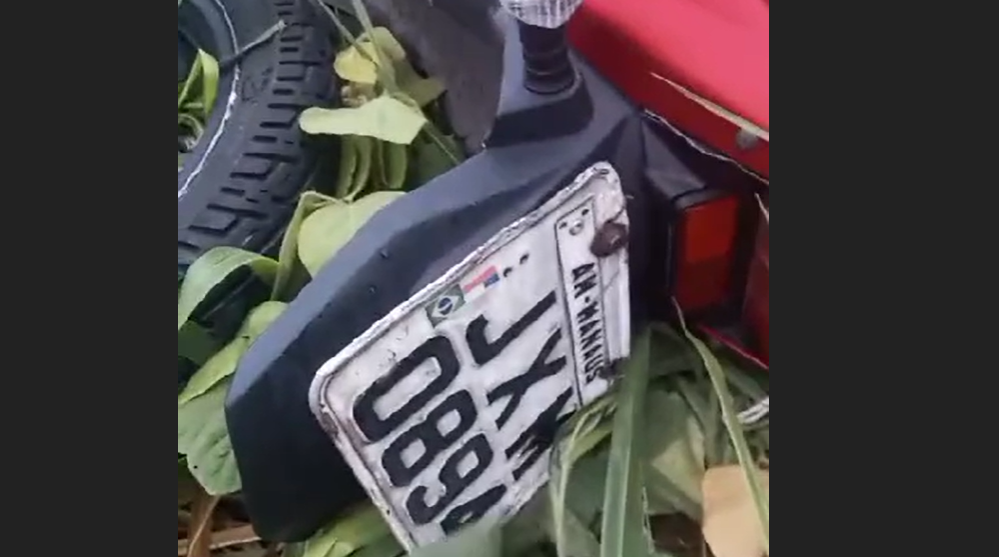 Ele compartilharam o vídeo e a placa da moto, em busca de informações sobre o que ocorreu. Ninguém sabe que é a vítima. A Factor 150, de placa JXM 0894 e o corpo estavam no meio do mato.