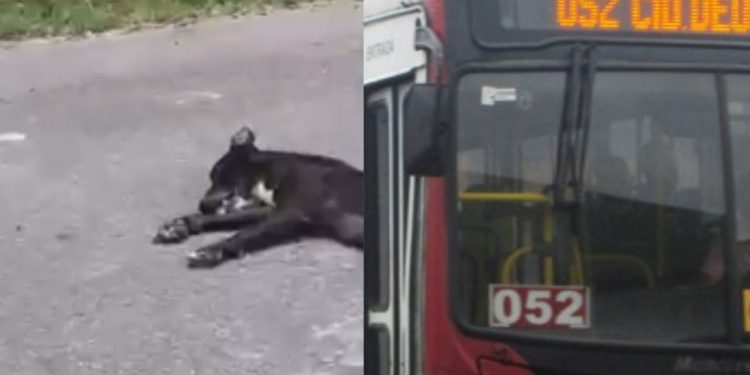 O animal estava deitado na rua Nossa Senhora de Aparecida quando o condutor da linha 052 passou por cima dele. A população ficou revoltada.